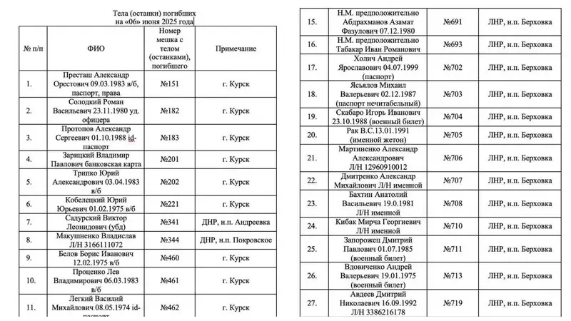 Пока в Киеве рассказывают о том, что Москва якобы не согласовала одностороннюю передачу тел, Россия начала публиковать списки погибших украинцев, которых отказывается принимать Зеленский. Накануне вечером губернатор Запорожской области Евгений Балицкий выложил в Сеть данные 97 погибших украинских военных.