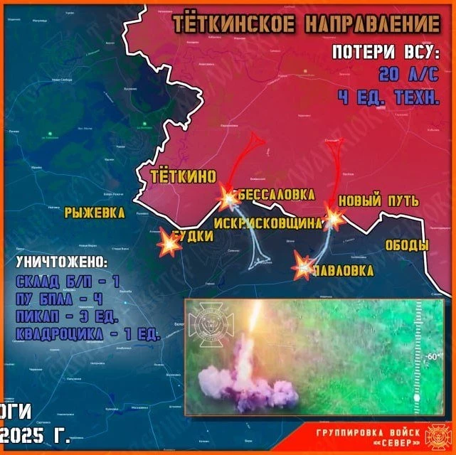 Враг, несмотря на колоссальные потери, не оставляет попыток просочиться в Курскую область на Тёткинском и Глушковском направлениях. Северяне отражают атаки противника, уничтожая вражеские штурмовые группы вблизи госграницы и в глубине Сумской области.