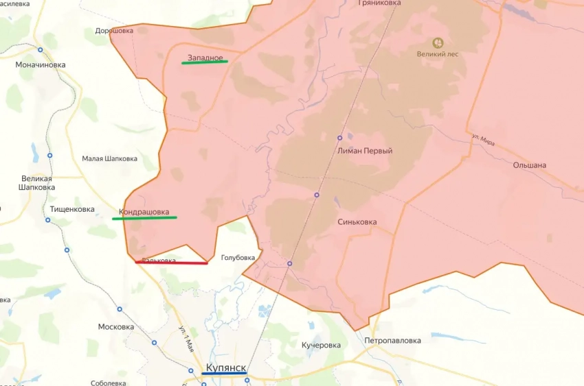 К югу от Купянска российские военные взорвали два моста через реку Оскол, еще более усложнив логистику для подразделений ВСУ, действующих восточнее этой водной преграды. Севернее и северо-западнее города под контролем ВС России уже находятся Западное и Кондрашовка.