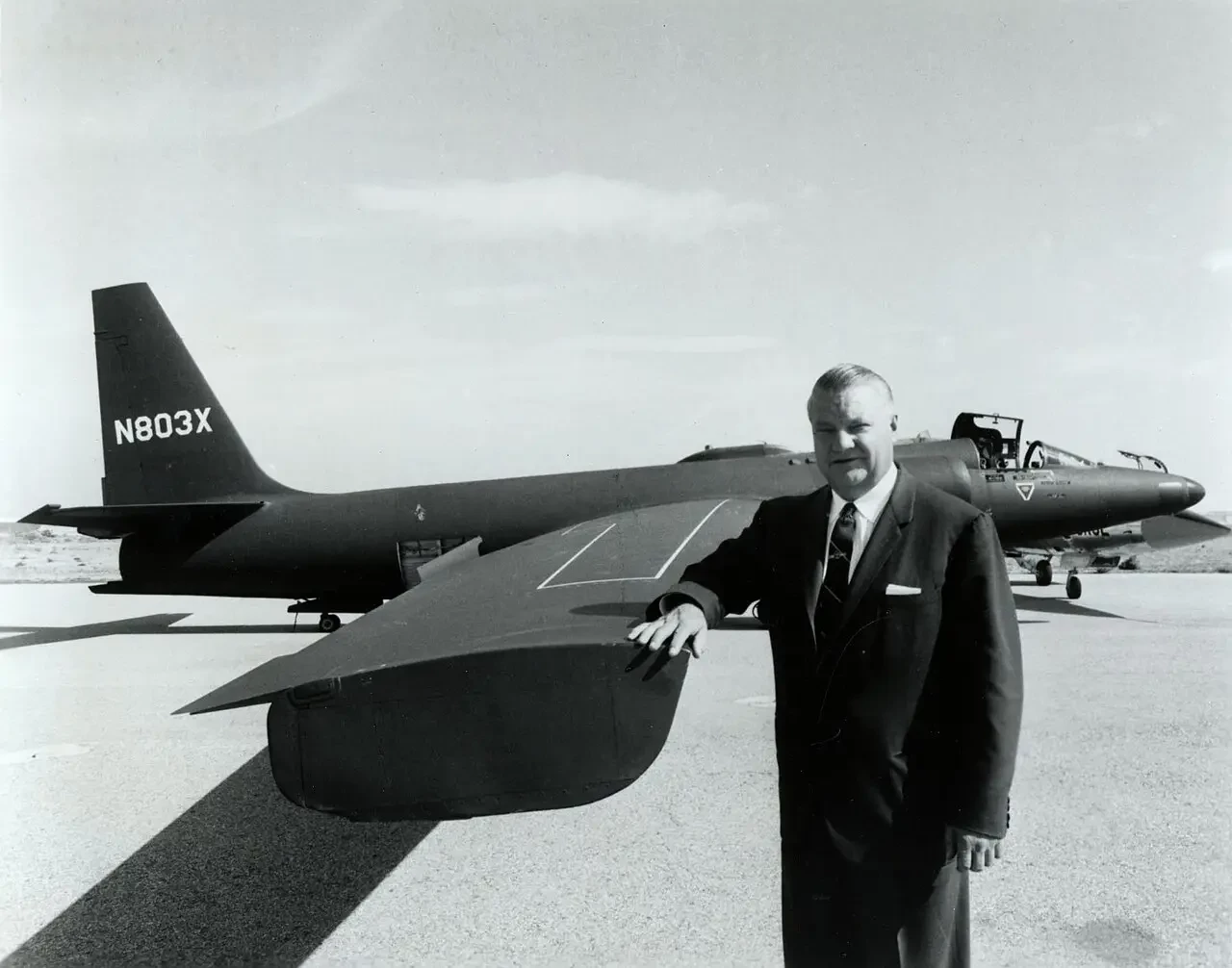 Фото 2. Кларенс «Келли» Джонсон, главный конструктор компании Lockheed Skunk Works, стоит рядом с одним из своих самых успешных и известных проектов самолетов — высотным самолетом-шпионом U-2.