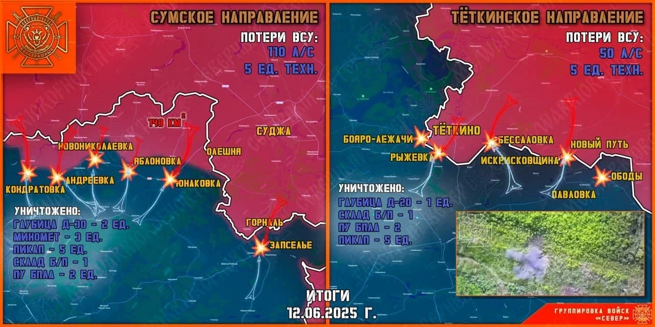 Главные новости » Эксклюзив » В Курской области ВСУ пытаются прорваться на Тёткинском и Глушковском направлении: свежие данные о боях на 13.06.2025