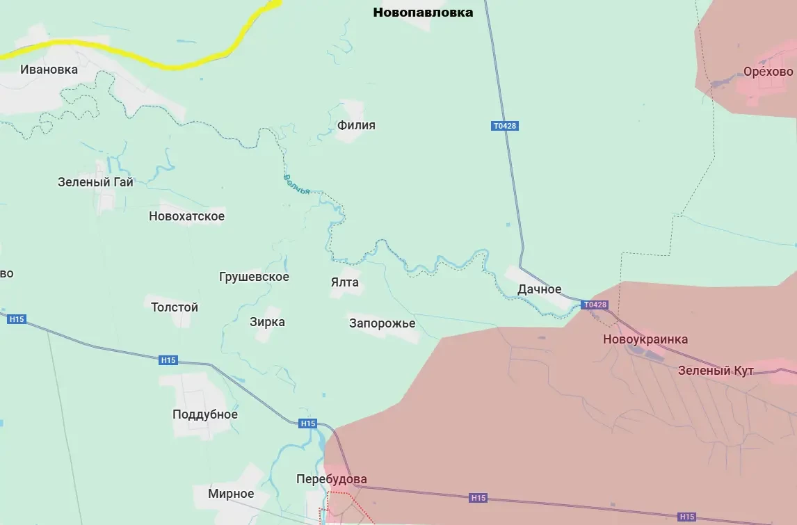 При учёте того, что наши войска уже ведут бои за село Дачное в этом регионе, ситуация для Новопавловского гарнизона ВСУ в значительной мере ухудшается. Дорога со стороны Межевой – под частичным огневым контролем, дорога в районе Дачного перерезана и потеряла своё прежнее для ВСУ значение вследствие освобождения Новоукраинки и Зелёного Кута. Как только будет перерезана упомянутая выше дорога, идущая через сёла Гавриловка и Ивановка, Новопавловка окажется, по сути, в окружении. Снабжение будет возможно исключительно по полям. И если в хорошую погоду ещё вполне рабочий вариант, то любой дождь превращает грунтовые дороги в настоящее испытание даже для тяжёлой техники.