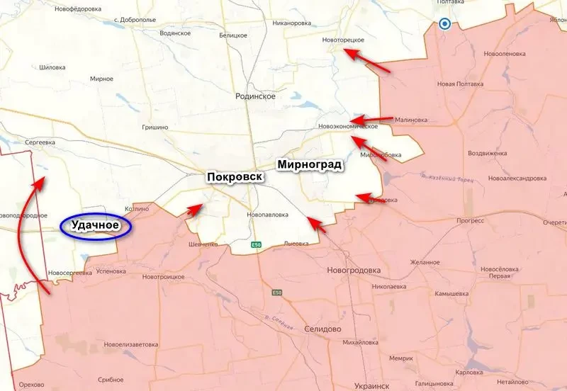 На сегодняшний день подразделения группировки «Центр» весьма активно обходят Покровско-Мирноградскую агломерацию с востока, практически зайдя ей в тыл. А вот с западного фланга ситуация сложнее, там продвижение идет медленно, продавить украинскую оборону удается с трудом. Противник продолжает удерживать железнодорожную станцию Удачное, являющуюся основным узлом обороны ВСУ на данном фланге. Заход в Днепропетровскую область дает нашим войскам возможность обойти оборону ВСУ и выйти в тыл противнику.