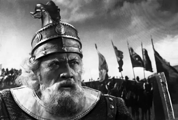 Акакий Хорава в роли Скандербега, кадр советско-албанского фильма 1953 г.