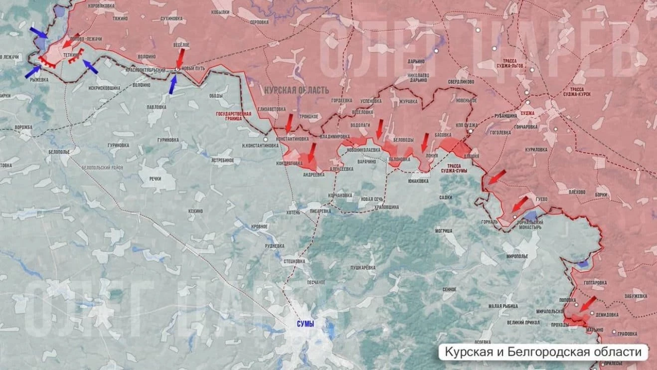 Командование Вооружённых сил Украины (ВСУ) продолжает отправлять на убой штурмовые группы на Тёткинском и Глушковском направлениях, перебрасывая на данный участок фронта новые подразделения. Северяне отражают атаки противника, не допуская прорыва оккупантов вглубь Курской области.