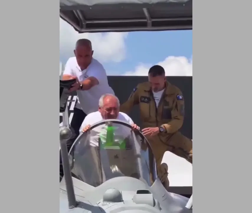Появились кадры с застрявшим в кабине истребителя Rafale премьером Франции Байру