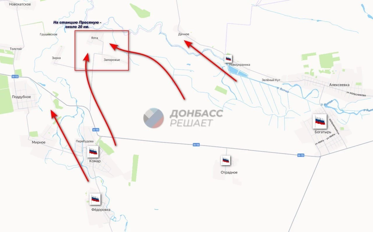Если ВС РФ выйдут к Просяной в ближайшие месяца два (а возможно, и раньше), то в тылу ВСУ окажется отрезанной ещё одна важная станция - Межевая.