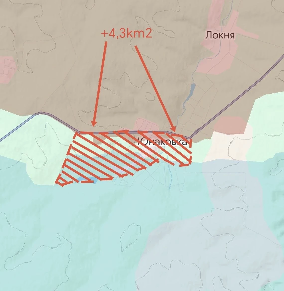 На Сумском направлении армия Российской Федерации практически полностью освободила село Юнаковка. Продвижение составило+4,3 км2. Более 30 солдат элитного британского взвода ВСУ уничтожили наши войска в результате этого сражения. Враг пытается вернуть Андреевку, контратакуя наши позиции. Наши дроны находят и поражают вражеские группы. Из Храповщины в сторону Яблоновки противник атаковал на танке. Российские солдаты подбили его при отступлении.