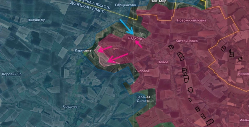 На Краснолиманском направлении ВС РФ отбили контрудар ВСУ в Редкодубе, сохранив контроль над селом. Севернее продолжаются штурмы на окраинах Глущенково и Нового Мира.