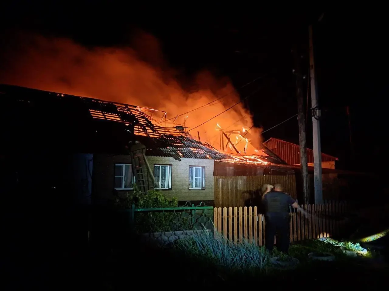 Хинштейн пишет, что беспилотник ударил в одноэтажный трёхквартирный дом, что привело к пожару: