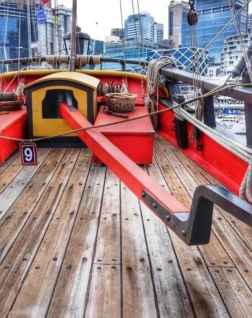 Стараясь придерживаться оригинала, рангоут решили выполнить из цельного дерева, для чего в США были заказаны бревна дугласовой пихты (эти деревья ранее предназначались для строительства американских минных тральщиков). Но австралийских кораблестроителей ждало разочарование. Доставленные из холодной зимы Северного полушария в жаркое лето Южного, бревна начали быстро растрескиваться. Поэтому рангоут в основном пришлось изготавливать также из ламинированной древесины.