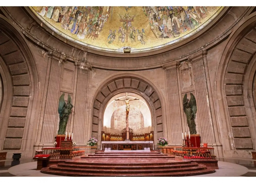 Над главным алтарем воздвигнут огромный купол высотой 42 м и диаметром 40,75 м. Он декорирован мозаичными картинами художника Сантьяго Падроса, состоящими из 6 миллионов керамических элементов. На картинах изображены как библейские сцены, так и кратко изложена вся история Испании как католической нации и изображены жертвы Гражданской войны 1936-1939 гг. Здесь же художник поместил свое изображение с женой.