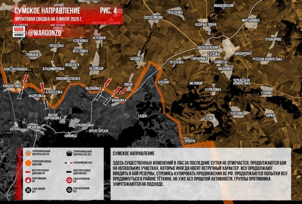 Карта боевых действий на Украине. Ситуация в зоне СВО на 05.07.2025