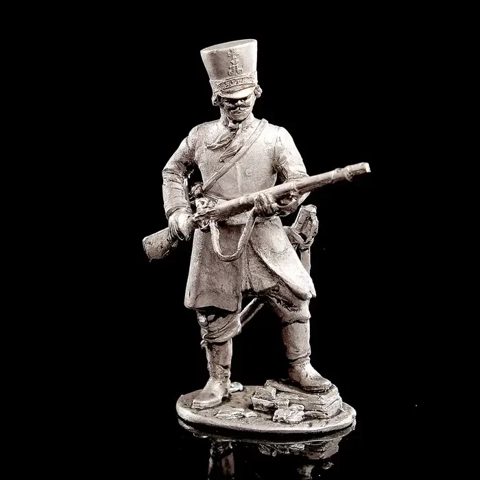 Фигурка-солдатик ратника конного полка Пензенского ополчения, 1812 г. Большая редкость. Дело в том, что фирмы, производящие фигурки солдатиков, не балуют нас фигурками ополченцев. Блеклые они получаются после раскраски, неяркие. Не то что гусары. А металла требуют столько же. Производитель: фирма «Ратник»