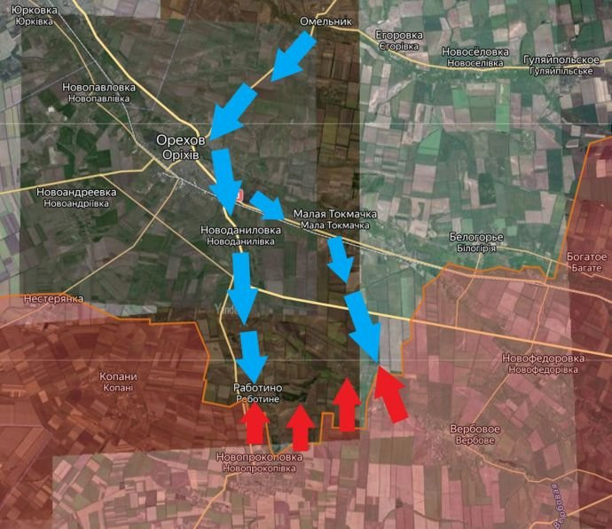 Что касается Запорожского направления, то здесь не стихает активная фаза боевых действий в населённом пункте Работино, который частично контролируется армией РФ. На Времевском выступе за последние сутки изменений не зафиксировано.