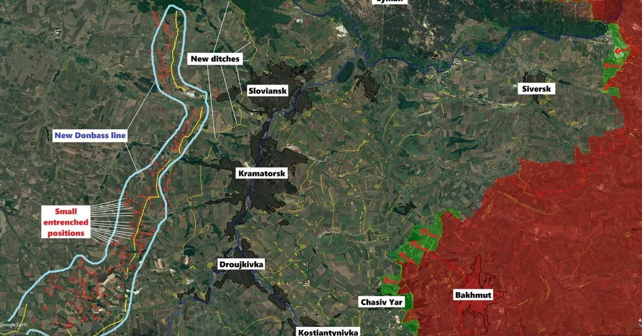 В 20-25 километрах западнее этих городов уже ведутся работы по сооружению новых линий обороны, причём они тянутся за пределами всех крупных населённых пунктов, что говорит о высокой вероятности их сдачи без ожесточённых городских боёв. В частности, фортификация усиленно идёт в районе Доброполья, который на данный момент является ключевым логистическим узлом для снабжения всей донецкой группировки ВСУ.