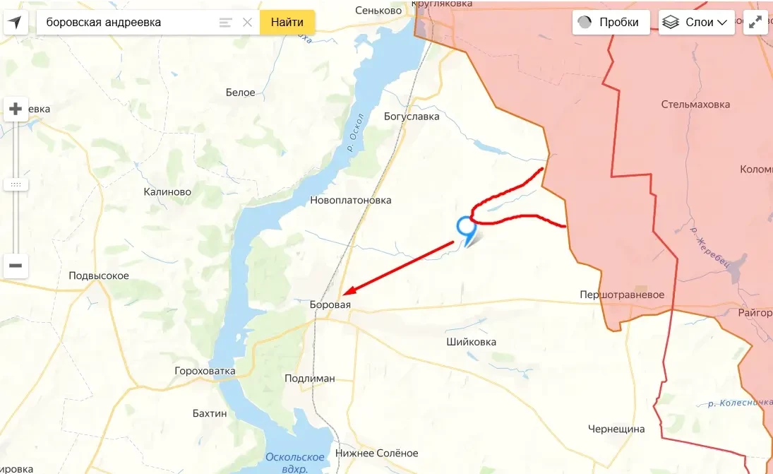 С западного направления находится водная преграда – река Оскол. В свою очередь, с юга эти населённые пункты снабжаются по трассе, которая будет перерезана нашими военными в случае взятия под контроль Боровой.