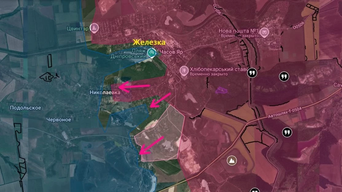 На западном участке Константиновского направления встречные бои в районе Попов Яра и Русин Яра. Наши бойцы продвигаются по лесам севернее Романовки, закрепились на юге Александро-Калиново и вплотную подошли к южным окраинам Катериновки. На севре направления бои на восточной окраине Николаевки. В Часов Яре ВСУ контролируют прибрежную зону Днепровского пруда. Российские подразделения выбивают врага в микрорайонах Шевченко и Южный. ВСУ стянули на красноармейский участок фронта наиболее боеспособные группировки, в их числе расчеты БПЛА «Птиц Мадьяра» и ударная группа «Дикие шершни».