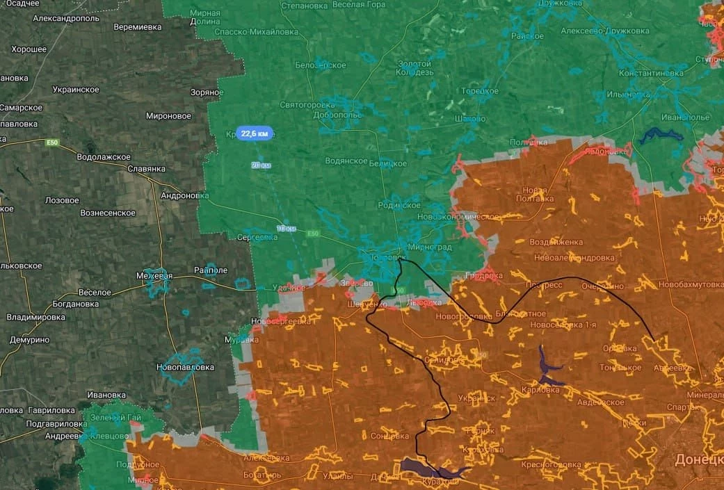 На Покровском участке российские подразделения продвигаются на юго-западе Котляровки. А вот зайти в Муравку нашим пока не удаётся, по селу работает наша артиллерия. В Новосергеевке противник цепляется за крайнюю западную улицу, там продолжаются бои.