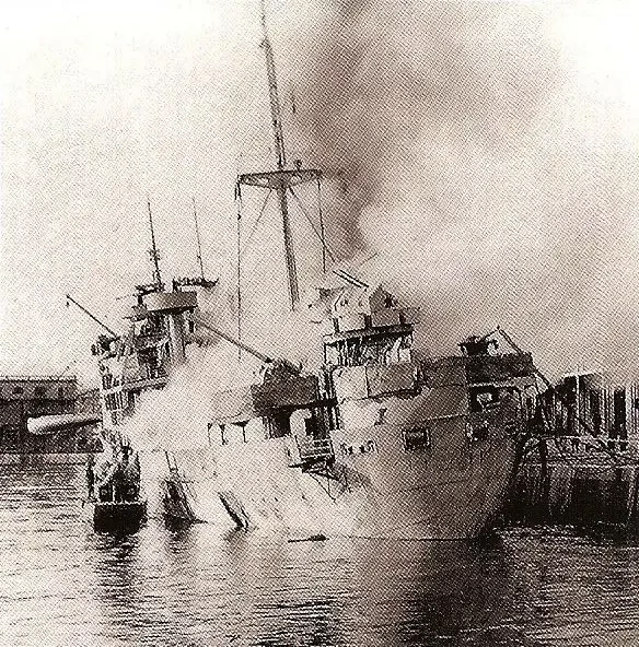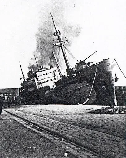 “Kiebitz” после атаки английской авиации, Фиуме, ноябрь 1943 г.