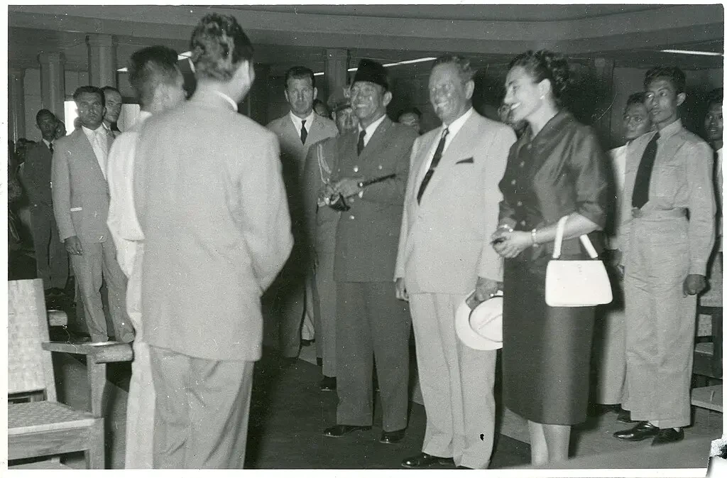 Сукарно, Тито и Йованка Броз на борту «Галеба» в Джакарте, 1958 г.