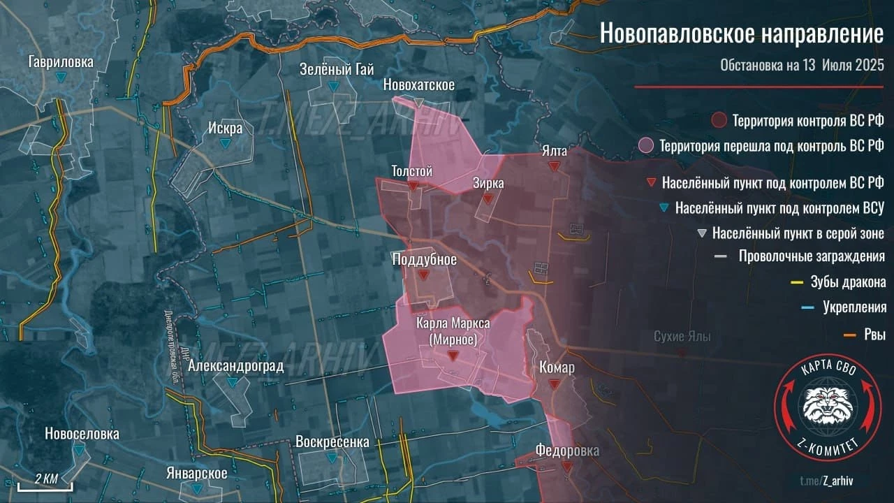 На Новопавловском направлении продолжаются бои в Новосергеевке и Муравке. ВС РФ с опорой Толстой ведут штурмовые действия в направлении Новохатского и Грушевского.