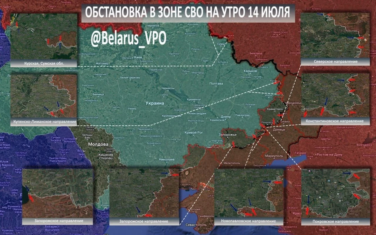 Карта боевых действий на Украине. Ситуация в зоне СВО на 14.07.2025