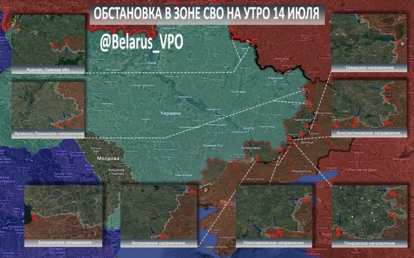 N4k предлагает ознакомиться с последними новостями из зоны проведения СВО, а также публикует свежую карту боевых действий, актуальную на 14.07.2025.