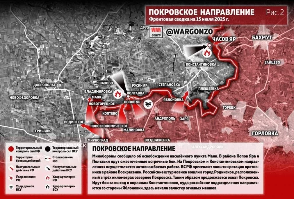 ВС России ведут ожесточённые бои на северной окраине Новоэкономического на Покровском направлении и движутся вперёд: свежие данные на 15.07.2025