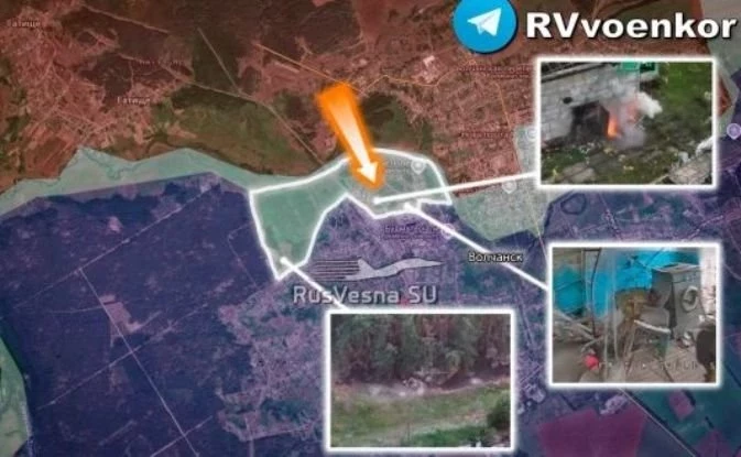 «Российские войска прорвались на левый берег р. Волчьей в Волчанске Харьковской области и заняли обширную территорию», - отмечает канал.