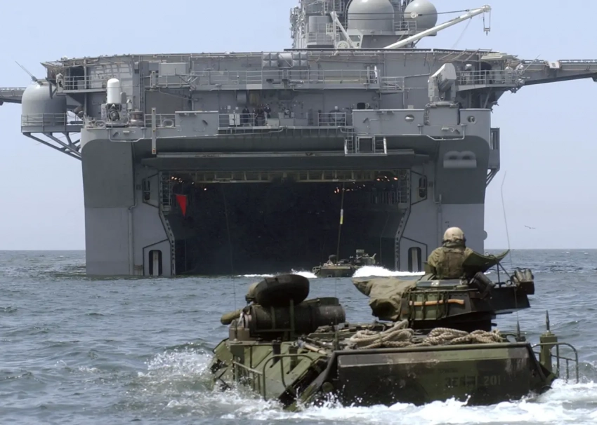В общем, 1 900 человек с необходимыми припасами, вооружением, боевой и транспортной техникой — это очень большой груз. Но десантному кораблю необходимо не просто доставить всё это из точки А в точку В, а еще и оперативно высадить на необорудованное побережье.