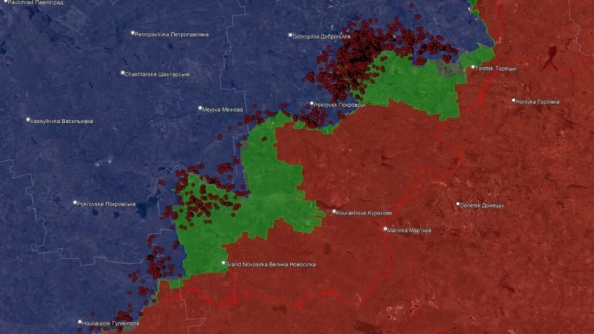 На Новопавловском направлении отмечаются боестолкновения в районе Удачного, российские войска расширили контроль территории в районе Новохатского и ведут штурмовые действия на восточной окраине Зелёного Гая.