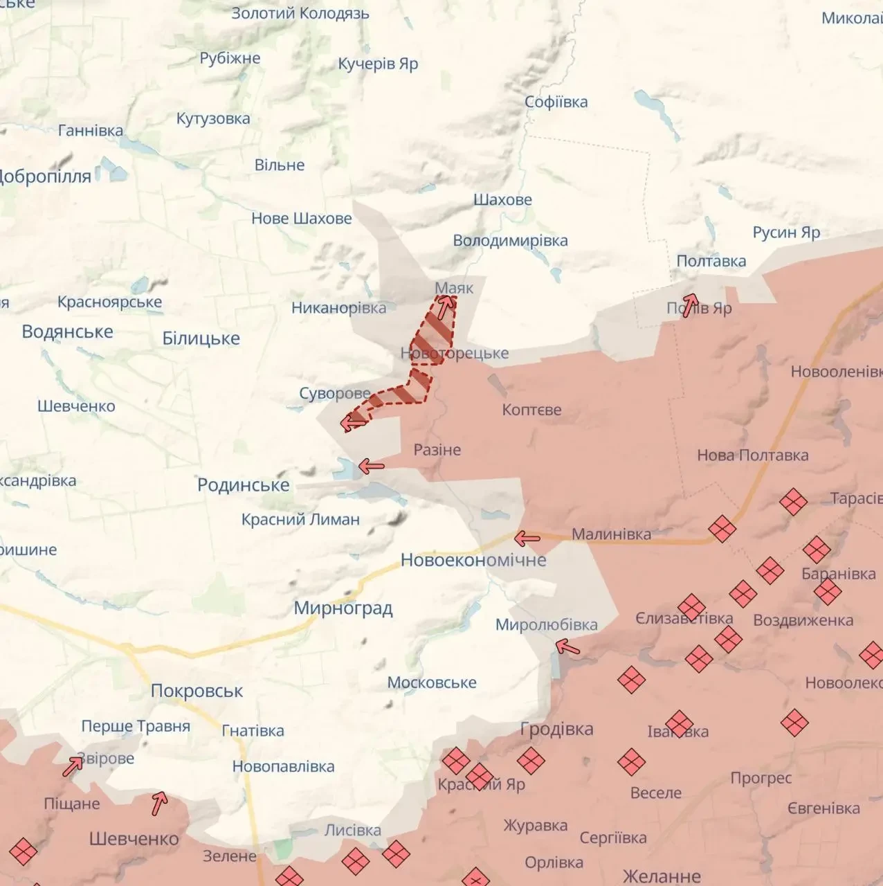Противник признаёт, что «серая зона» дошла уже до Нового Шахово к северо-востоку от Покровска