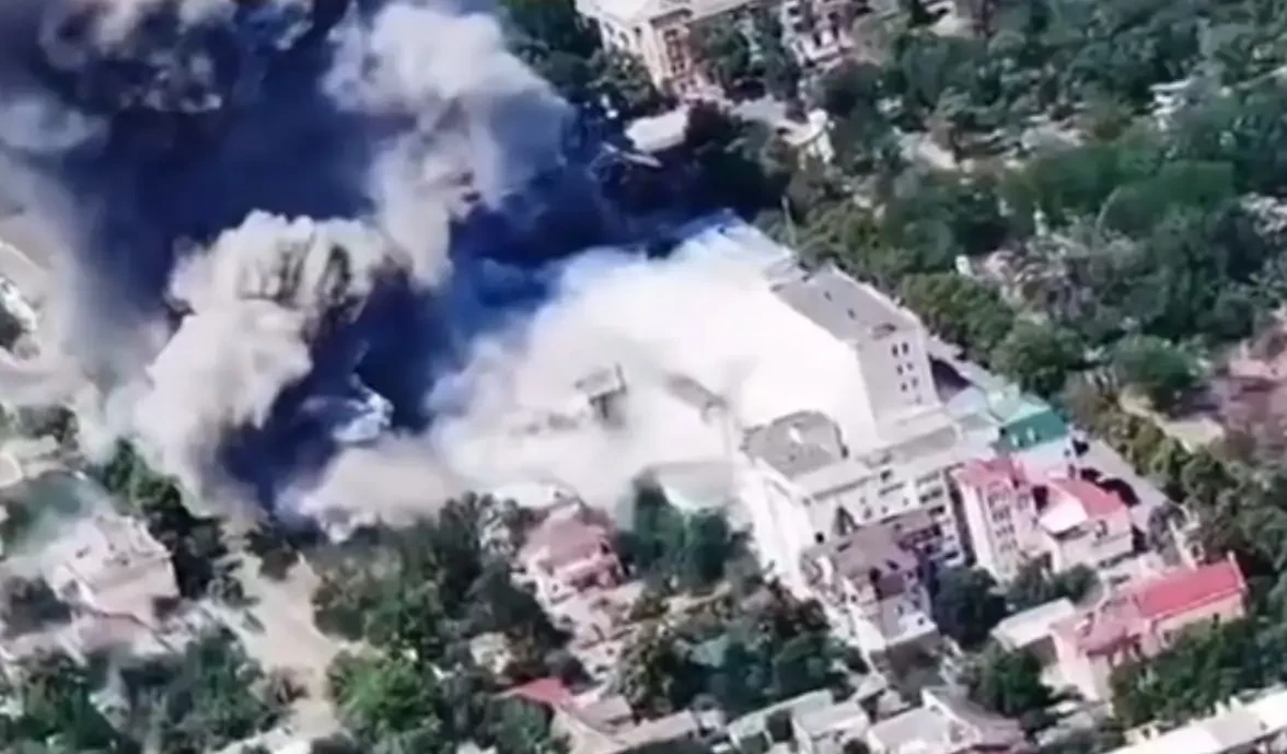 Опубликованы кадры вчерашних прилётов КАБов по штабу ВСУ в здании МВД в Херсоне