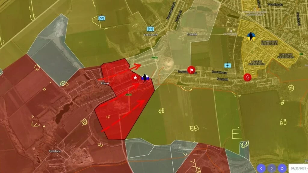 На Покровском направлении освобождено Зверево, идёт штурм Леонтовичей. ВС РФ также продвигаются в районе Новоэкономического и шахты «Капитальная». ДРГ фиксируются в Покровске и у Мирнограда.