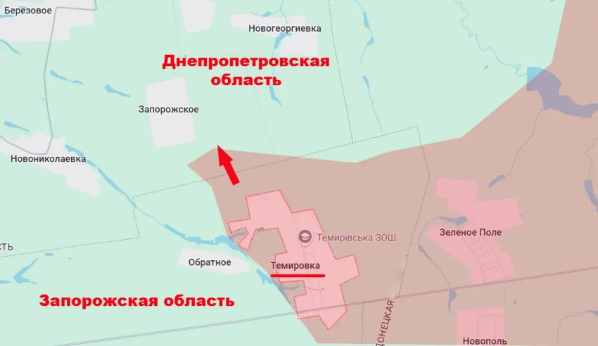 Двигаясь к северу от Темировских озёр, ВС РФ подходят к селу Запорожское с юга. Оно располагается в Синельниковском районе (ранее относилось к Покровскому району – не путать с одноимённым районом Донбасса) Днепропетровской области.