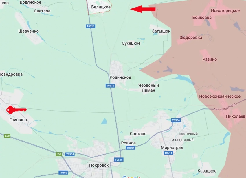 Главные новости » Эксклюзив » Российские войска прорвались к городу Белицкое, что к северу от Покровска