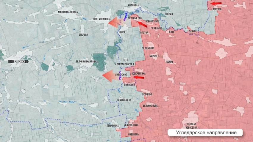 На Угледарском направлении ВС РФ после освобождения Темировки закрепились на окраинах с. Обратное. Со стороны Шевченко и Малиевки наши части пробиваются к Камышевахе. В районе Воскресенки противник контратакует, пытаясь не допустить штурма Январского и Александрограда. В районе Искры ВКС РФ наносят авиаудары по ПВД противника.