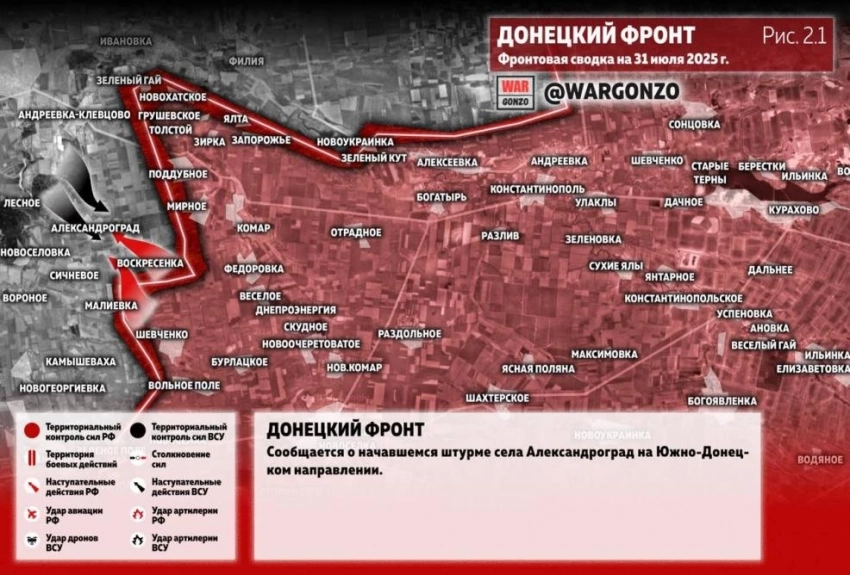 Карта боевых действий на Украине. Ситуация в зоне СВО на 31.07.2025