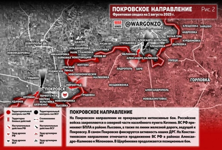 ВС РФ ведут ожесточённые бои на трёх участках Покровского направления: свежие данные на 1 августа
