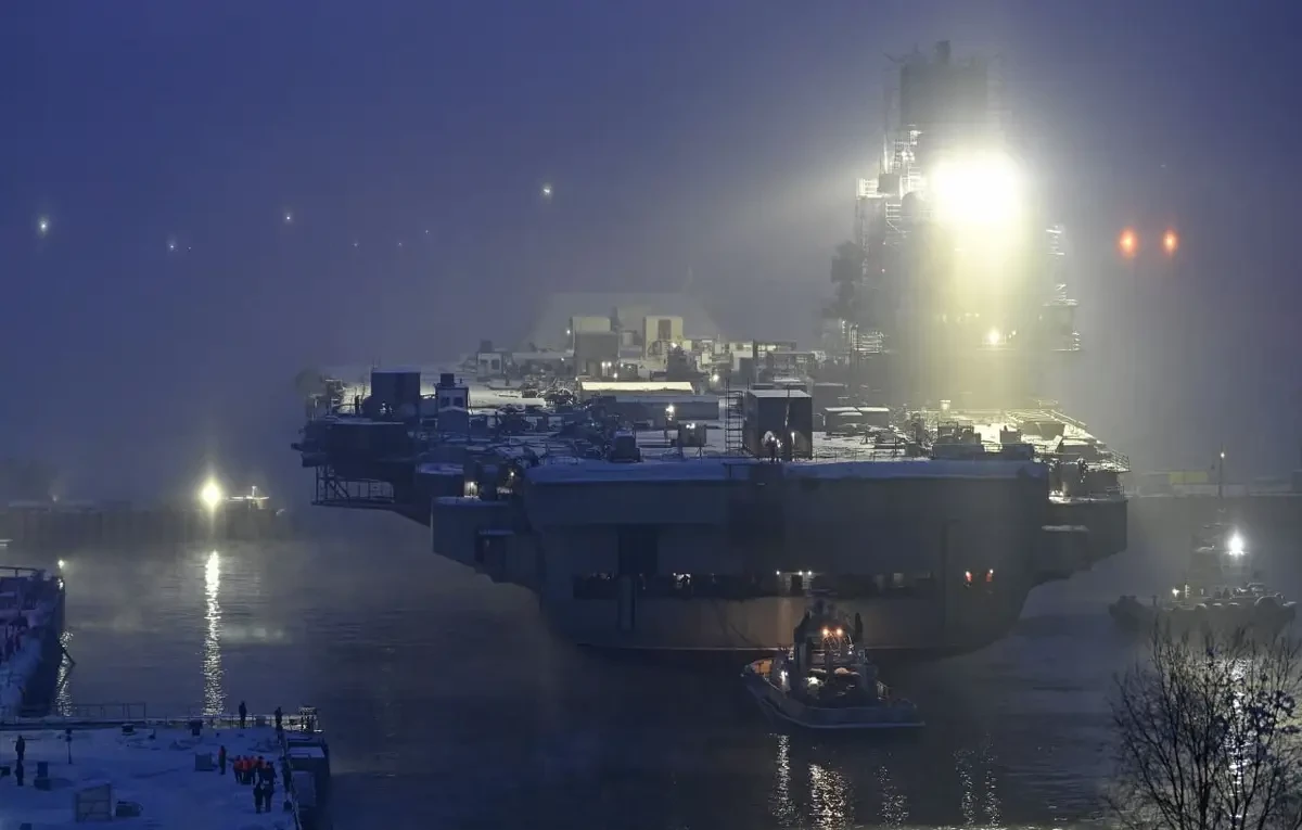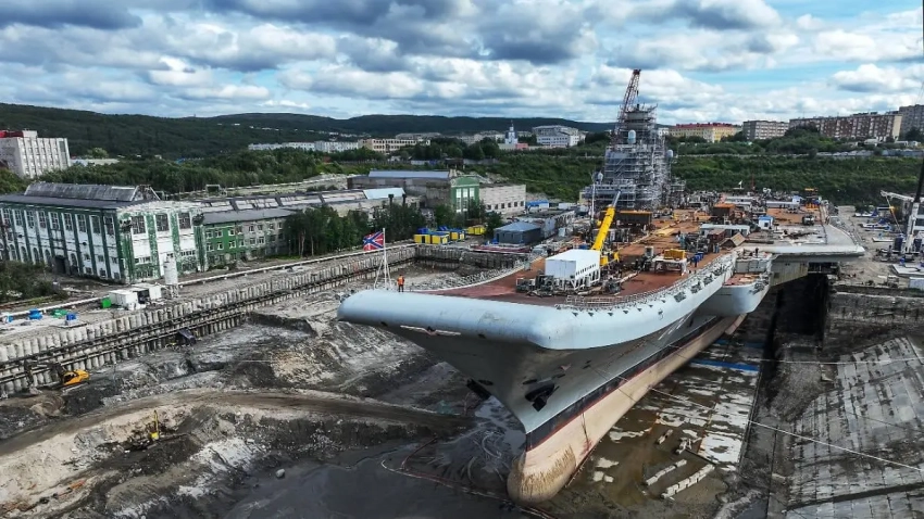 21 февраля 2023 года бывший крейсер, а теперь легкий авианосец «Адмирал Кузнецов» вышел из сухого дока 35-го судоремонтного завода и встал у стенки. Ремонтные и модернизационные работы должны были продолжаться у достроечной стенки до 2024 года.