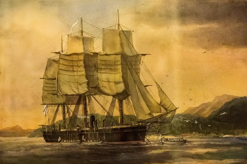 Закончить рассказ о русских корветах стоит стоящим наособицу «Баяном». Наособицу, потому что, если все остальные герои этого рассказа были построены на верфях Российской империи, то «Баян» — иностранец. Он был заказан в 1856 году контр-адмиралом И. И. фон Шанцем в Бордо, на верфи «Колло и Ко». Да, так бывает: вчера с французами изо всех сил рубились под Севастополем, а сегодня они строят нам корабли. Наверное, потому что англичан французы любят сильно меньше, чем русских, а то, что данный корвет будет угрожать именно коммуникациям Владычицы морей, у лягушатников сомнений не возникало.