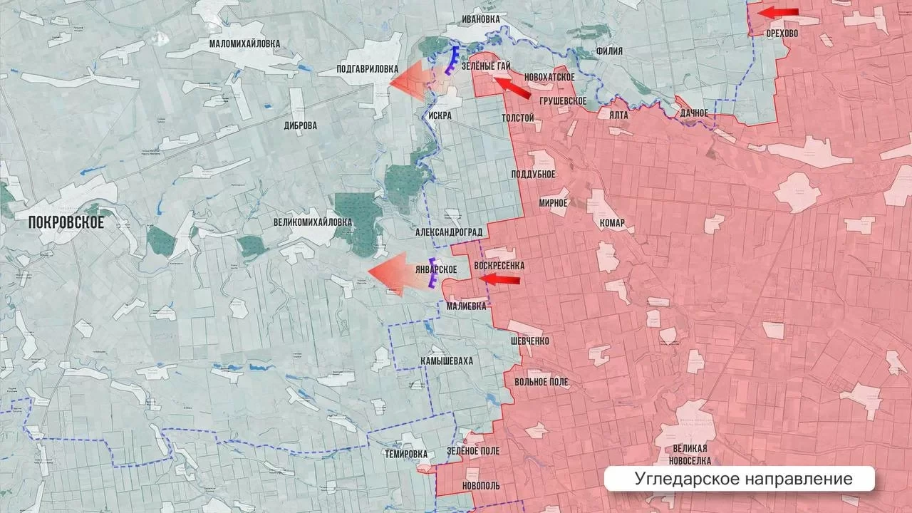 Интенсивные сражения разворачиваются за Искру, где российские штурмовые группы преодолевают минные поля и огневые точки противника. Кроме того, поступают сообщения о боестолкновениях в районе Зелёного Гая, где ВС РФ стремятся закрепиться на выгодных рубежах.