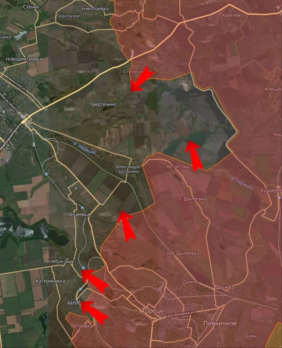 Северо-восточнее Белой Горы наши бойцы продвинулись на 2,5 км, взяв под контроль часть балки. На подступах к Клебан-Быку и Катериновке ВС РФ уничтожают логистику противника, осложняя снабжение гарнизонов. У Щербиновки продолжается наступление - населённый пункт расположен у водоёма, что ограничивает манёвры ВСУ.