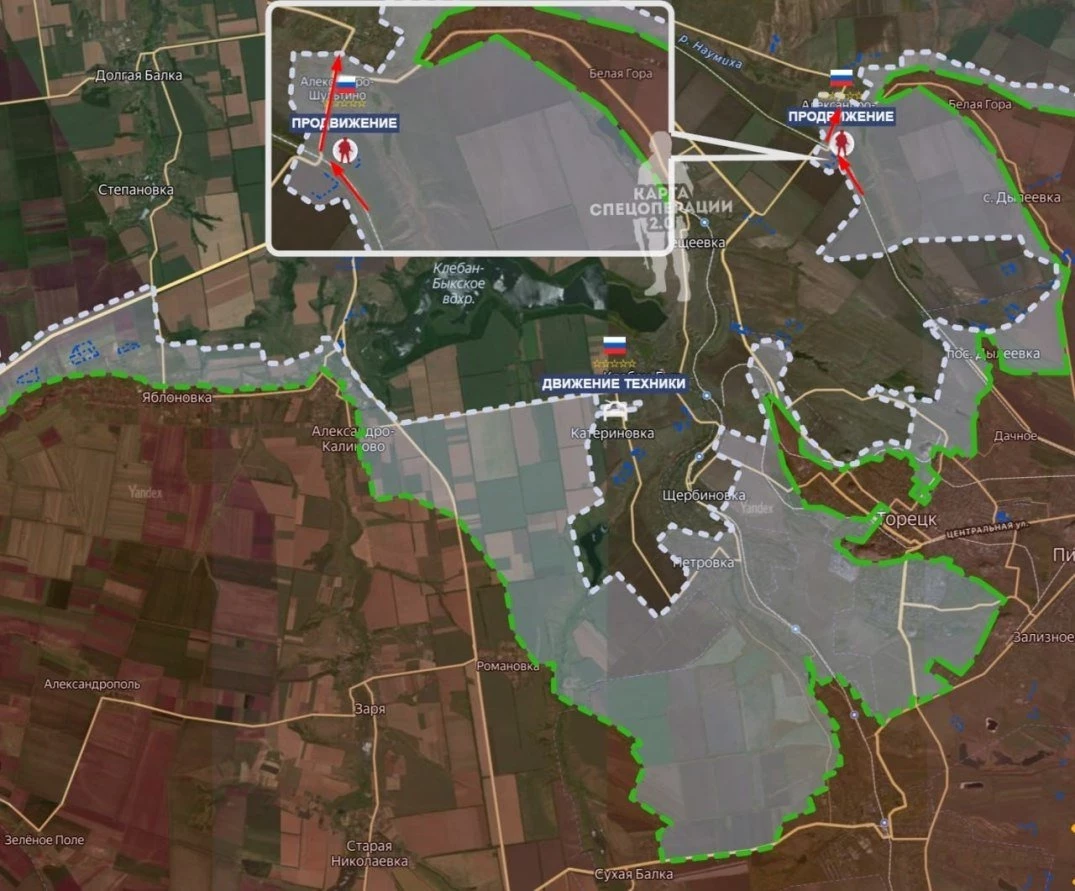 На Северском направлении ВС РФ укрепляют позиции западнее Новосёлки. Бои идут также в районе Ивано-Дарьевки и Выемки и южнее Серебрянки. Продвижение на этих участках позволит создать давление на гарнизон противника в Северск с трёх сторон.