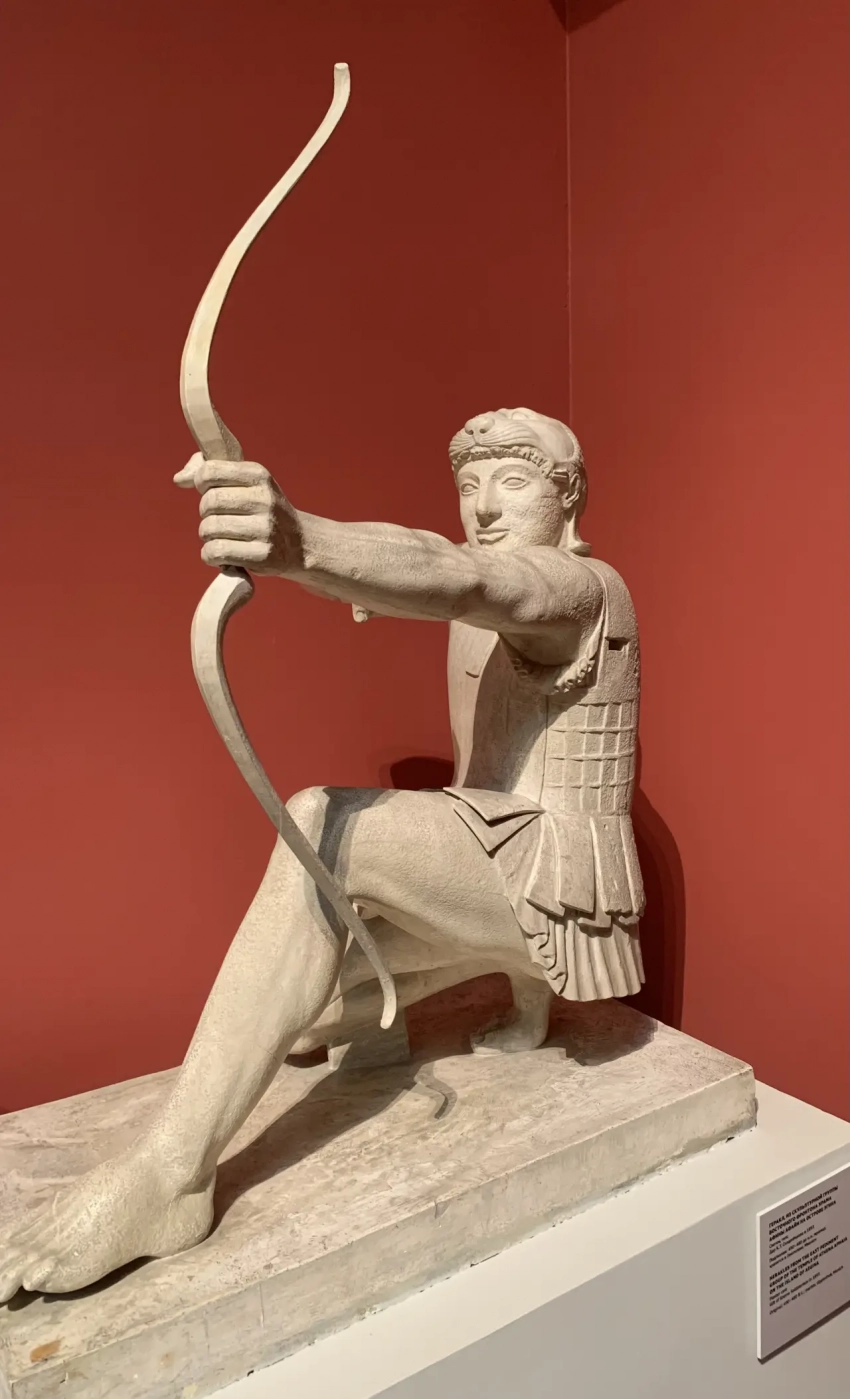 Лучник. Слепок, гипс. Дар К.Т. Солдатенкова, 1893 г. Подлинник: около 500-490 до н.э.; мрамор; хранится в Глиптотеке, Мюнхен