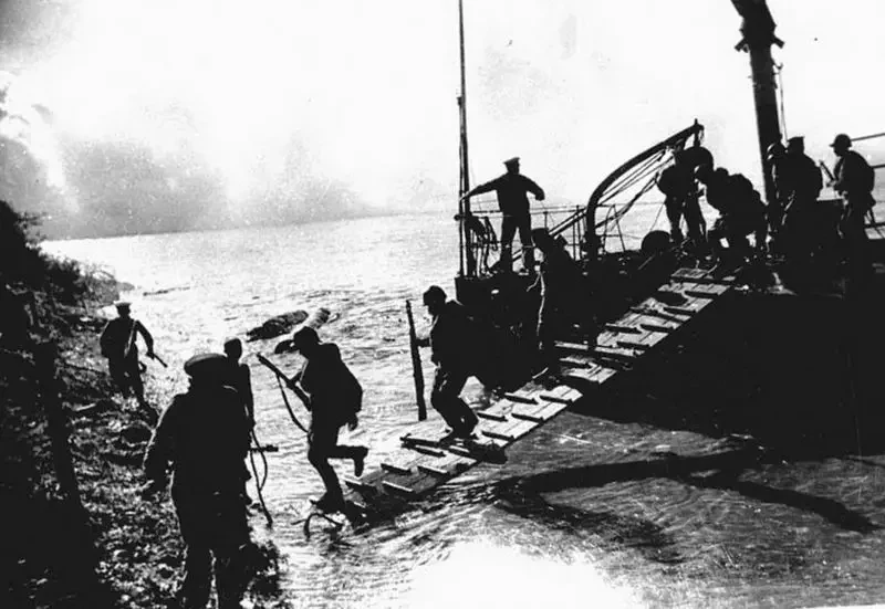 Высадка советского десанта на берег Маньчжурии. Август 1945