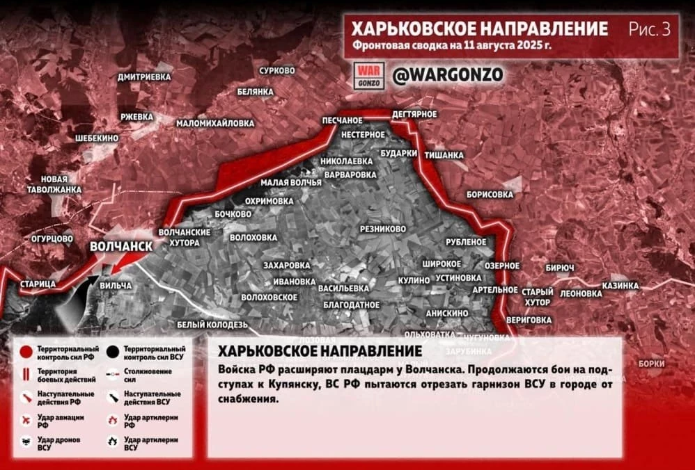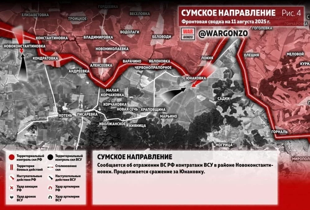 Карта боевых действий на Украине. Ситуация в зоне СВО на 11.08.2025