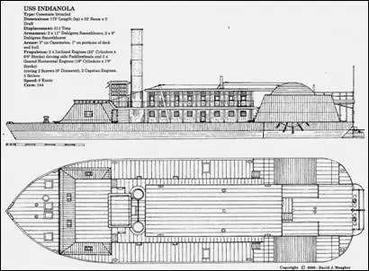 Длина его составляла 48,82 метра, ширина — 11 метров, и осадка — до 2,59 метров. Полное водоизмещение броненосца было 677 тонн. Он был полностью построен из железа, без какого-либо применения деревянных конструкций; корпус его был собран из пяти больших железных отсеков, произведённых отдельно и собранных на верфи. Сами орудия были типичными гладкоствольными дульнозарядными орудиями Дальгрена, стрелявшими ядром весом до 75 кг, фугасной бомбой весом до 70 кг, шрапнелью и разного размера картечью. Их дальность составляла до 3650 метров при угле возвышения до 15 градусов. Для того времени это были достаточно мощные орудия, способные (с небольшой дистанции) пробивать наклонную 100-миллиметровую броню конфедеративных броненосцев. Так что очень даже оригинальных кораблей хватало и у южан, и у северян!