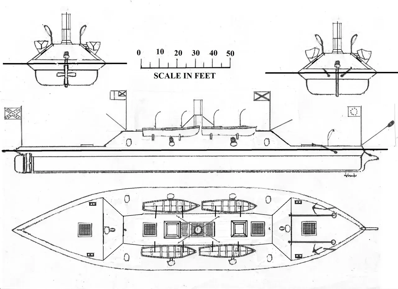 К этому времени реки США каких только «броненосцев» не видали. Их делали «из всего, что под руками» по принципу «стоимостью дешевле, эффективностью выше». Поэтому совсем неудивительно, что среди спущенных на воду речных судов было немало простых переделок заднеколесных пароходов.